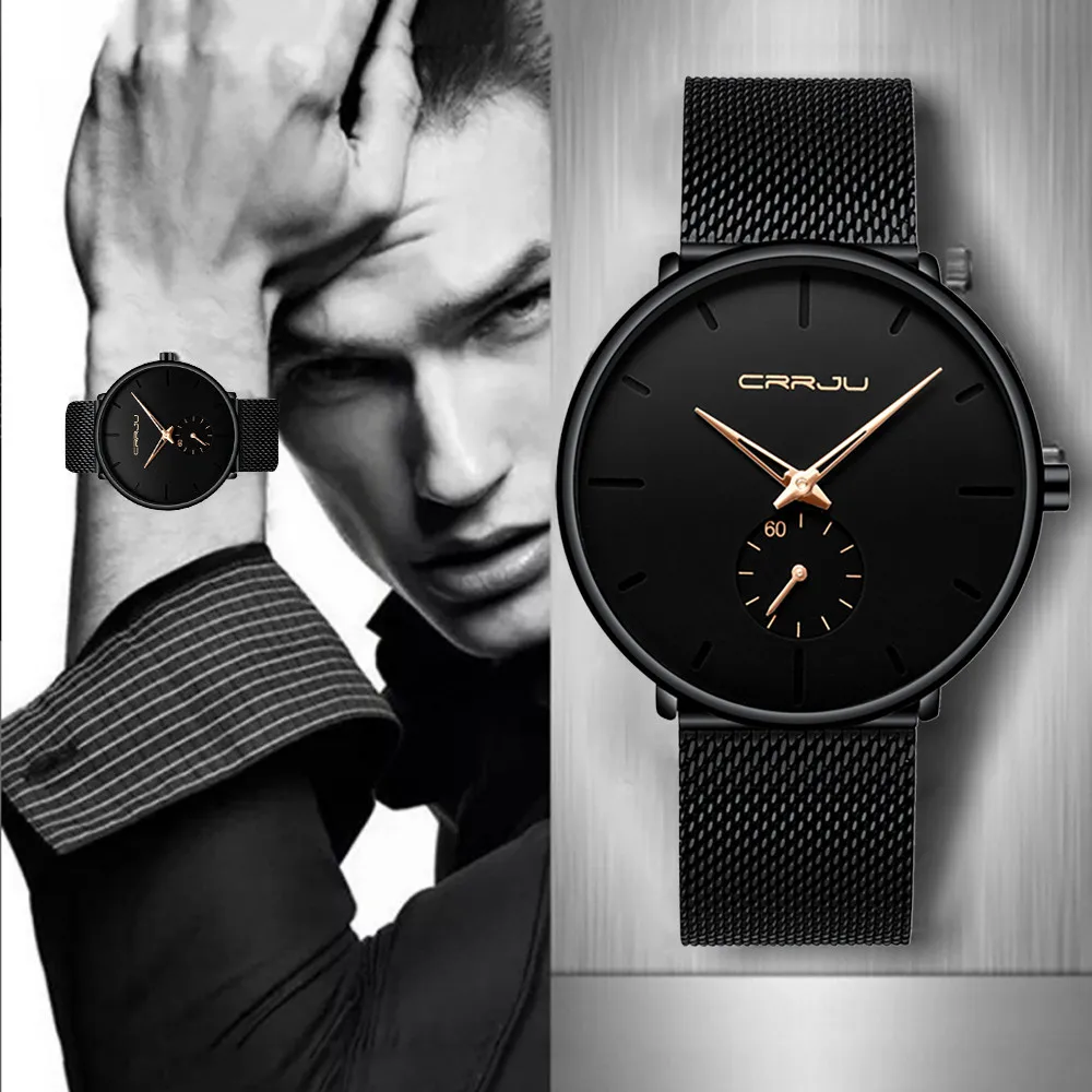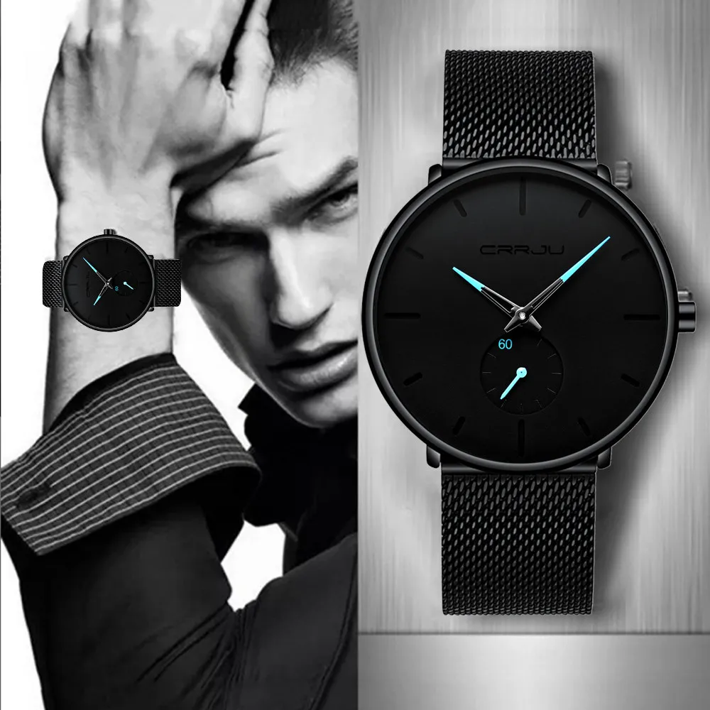 30 Meter Waterproofing Super Thin Men's Business Watch Black Leisure Wristwatch
