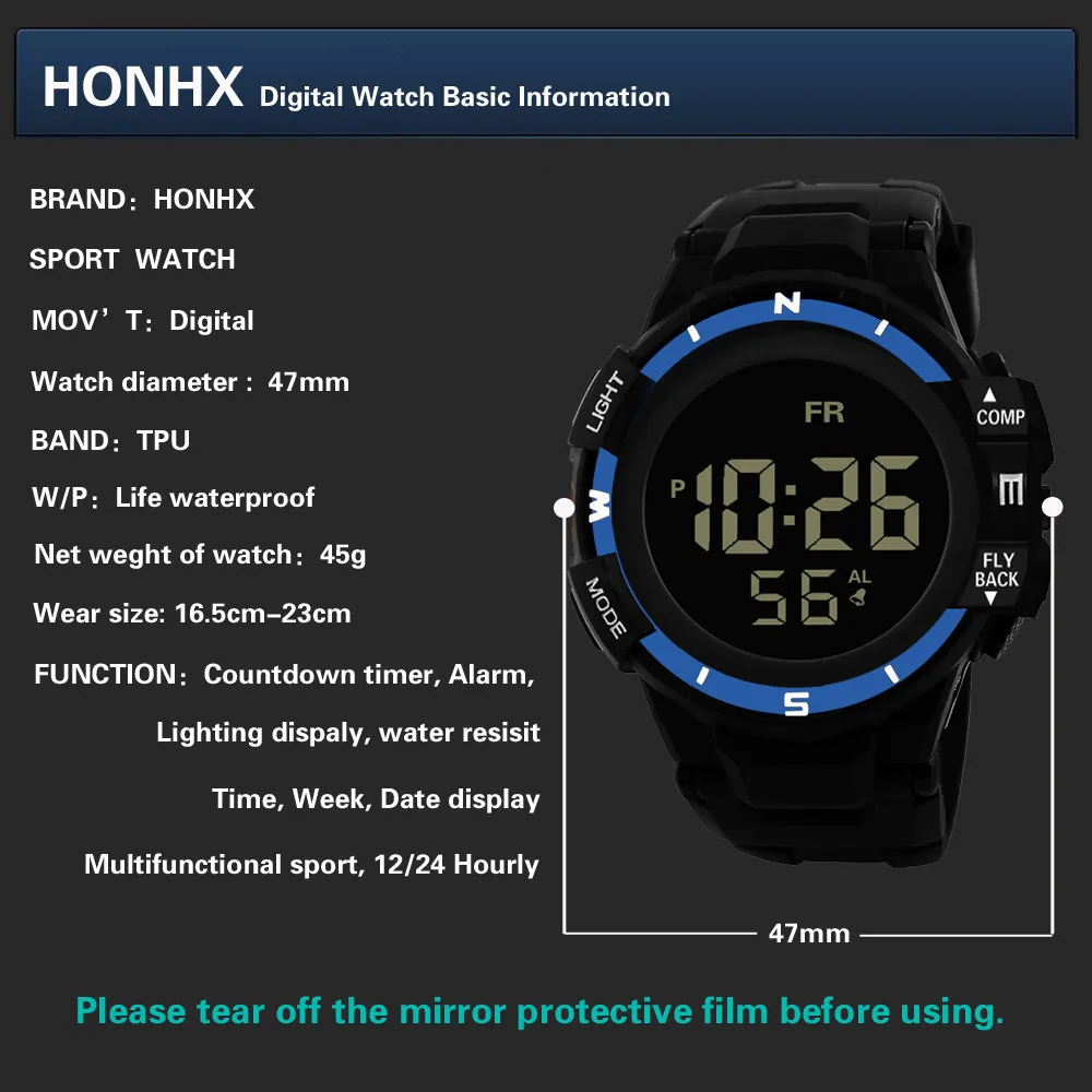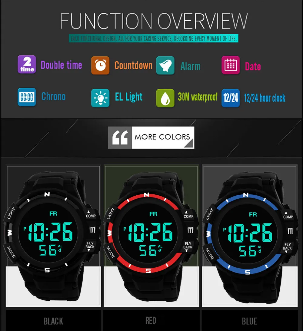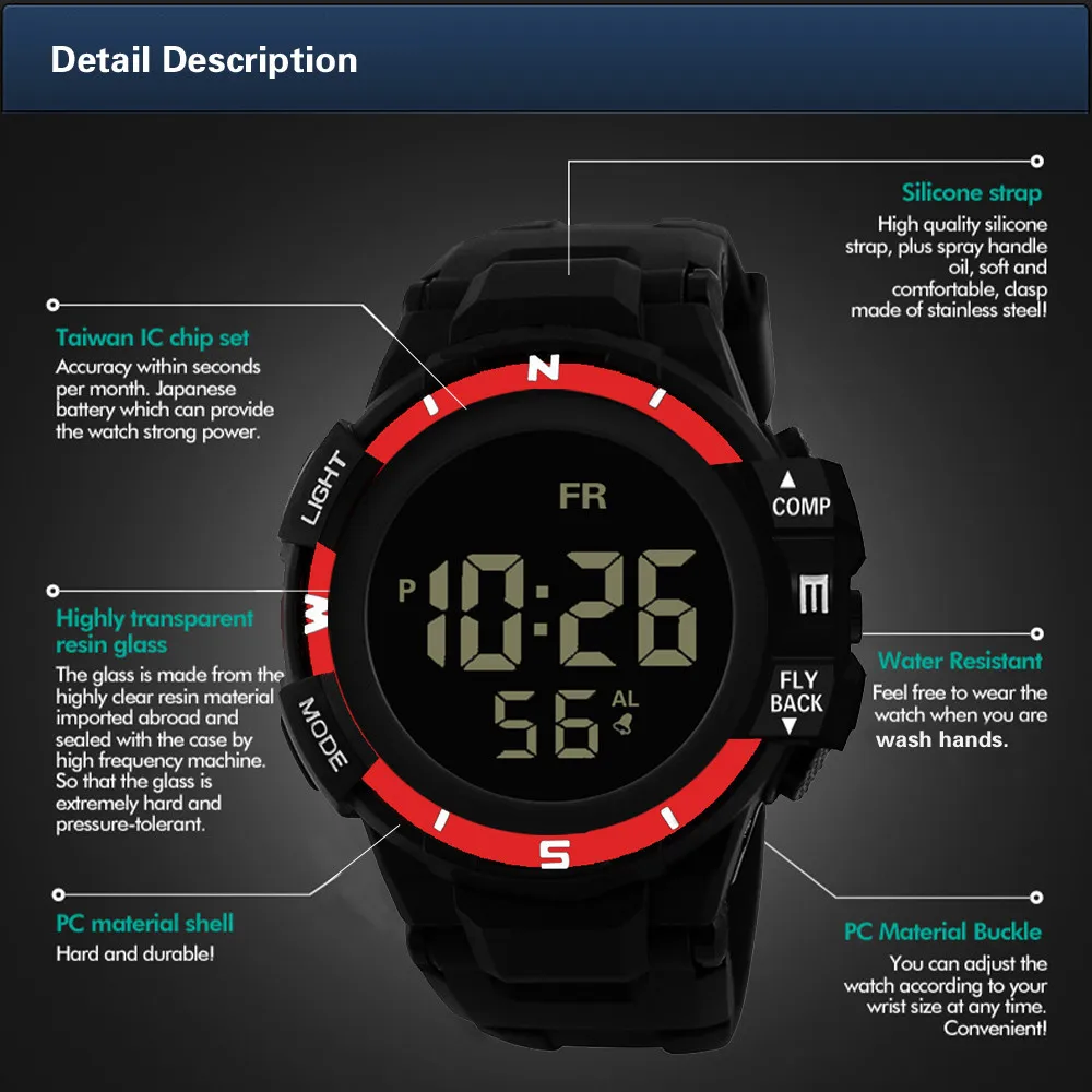 • Water Resistant: 5 ATM, Also for shower, swimming and <50m diving.(Pls don't press any key under water)
